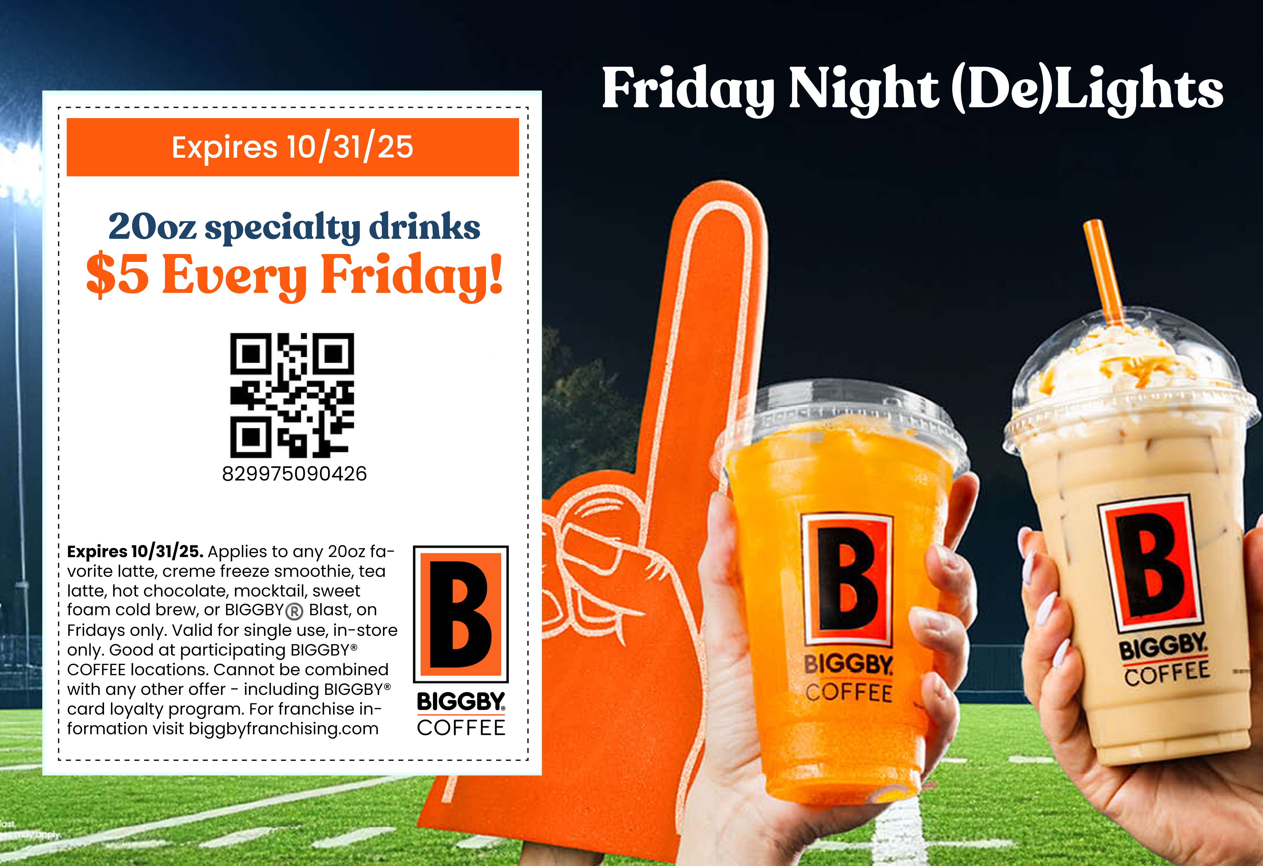 This football season celebrate with BIGGBY® COFFEE every Friday for Friday Night (De)Lights.