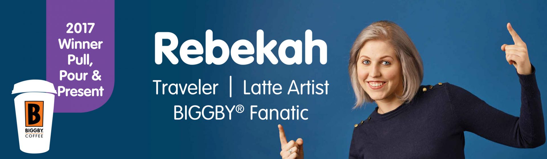 Rebekah is one of those people that you meet and feel comfortable around right away. She’s optimistic, driven, and open. She has a passion for people—making friends, hearing their stories, lifting them up—and new experiences. Her adventuresome nature and jump-in-with-both-feet mentality landed her at the BIGGBY® COFFEE Annual Franchise Meeting where she ended up winning the 2017 Pull, Pour, and Present competition!