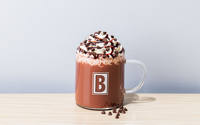 A warm, chocolate-kissed delight, perfect for celebrating with those you love. Available hot, iced, or frozen.